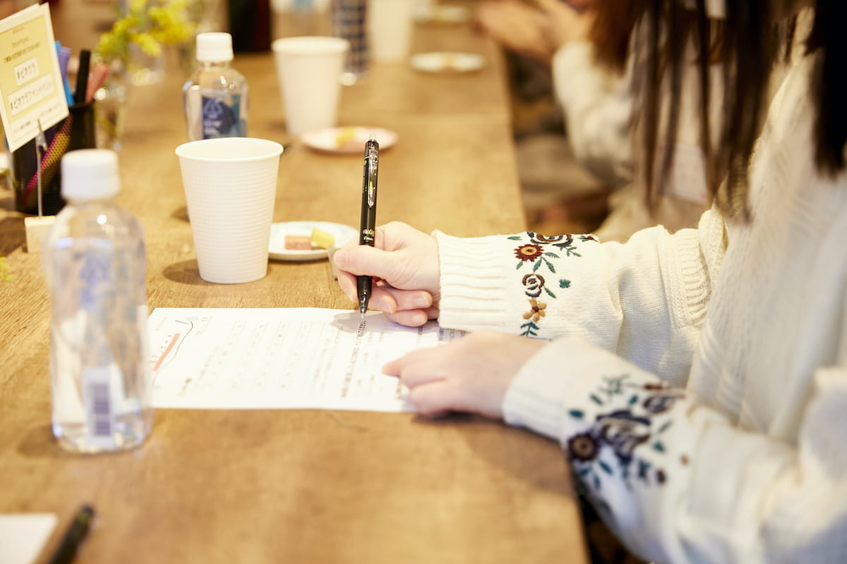ファンイベントでは、スタッフもゲストもニックネームで呼びあいます。ニックネームをネームプレートに記入しながら、