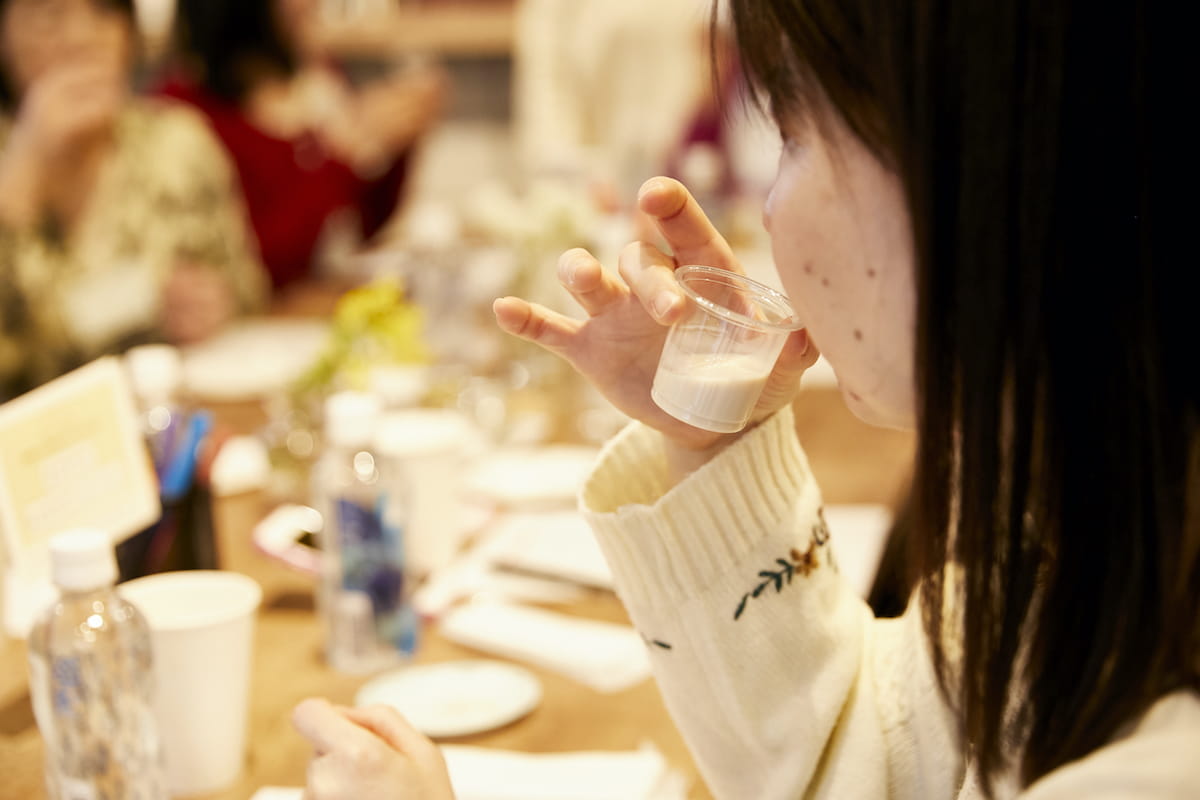 今回のイベントでは、特別にクッキーの原材料の「豆乳」や「きなこ」もご試食いただきました!